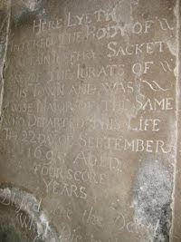 By an extraordinary coincidence, the gravestones of Jeffery Sackett and his family at St Mary’s Church, Sandwich, were “discovered” twice in one afternoon by Sackett Family Association members attending the reunion in Thanet, Kent, last September.